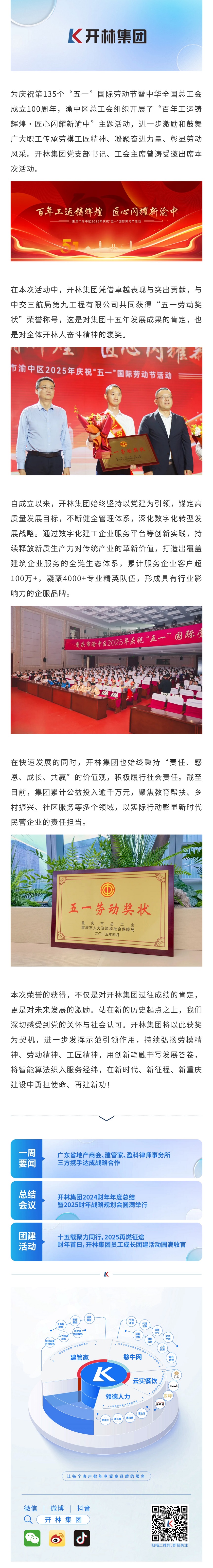 喜报 | 热烈祝贺开林集团荣获2025年重庆市“五一劳动奖状” ,载誉前行启新程!
