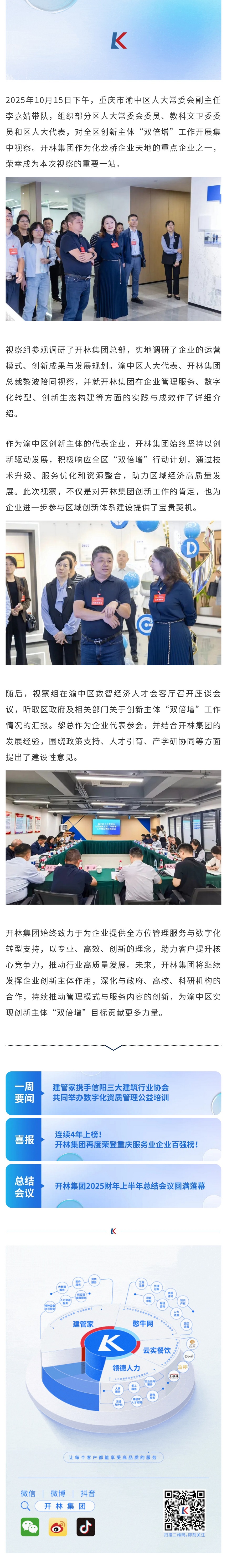 重庆市渝中区人大常委会领导一行莅临开林集团,指导调研“双倍增”工作部署情况